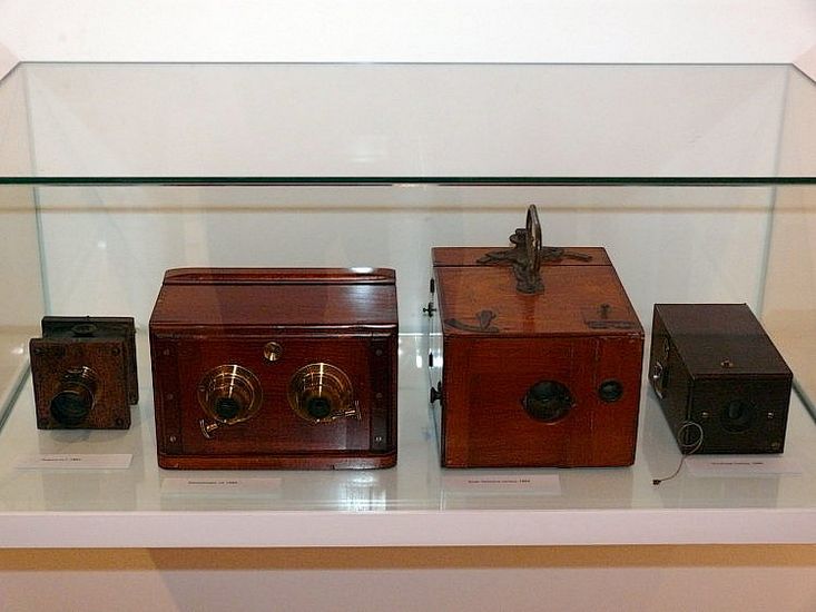Ganz links eine Spionkamera, 2. von links eine Stereokamera