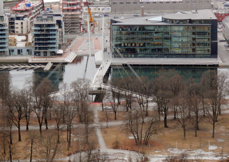Vom Wanderweg gegenüber am Berghang mit der bildlichen Erklärung des Brückennamens.