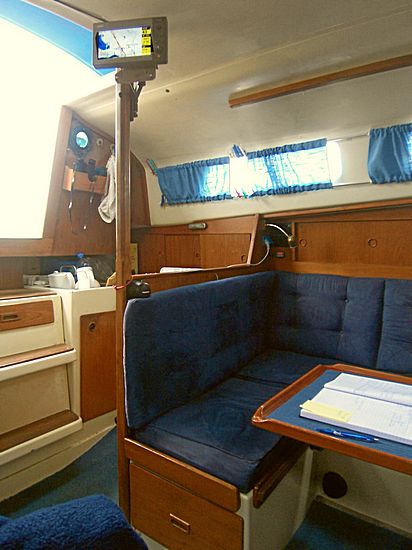 Da habe ich die Diesel-Heizung in Betrieb gesetzt, draußen 13 °C, drinnen 20°C, und ich habe meistens im Warmen gesessen und mir das Geschehen auf dem Plotter angesehen. Unterm Tisch kommt die warme Luft raus. Der Autopilot musste frieren.