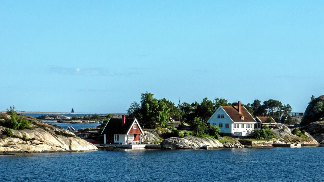 Schären in Kragerögebiet, im Hintergrund die Bake von Jomfruland